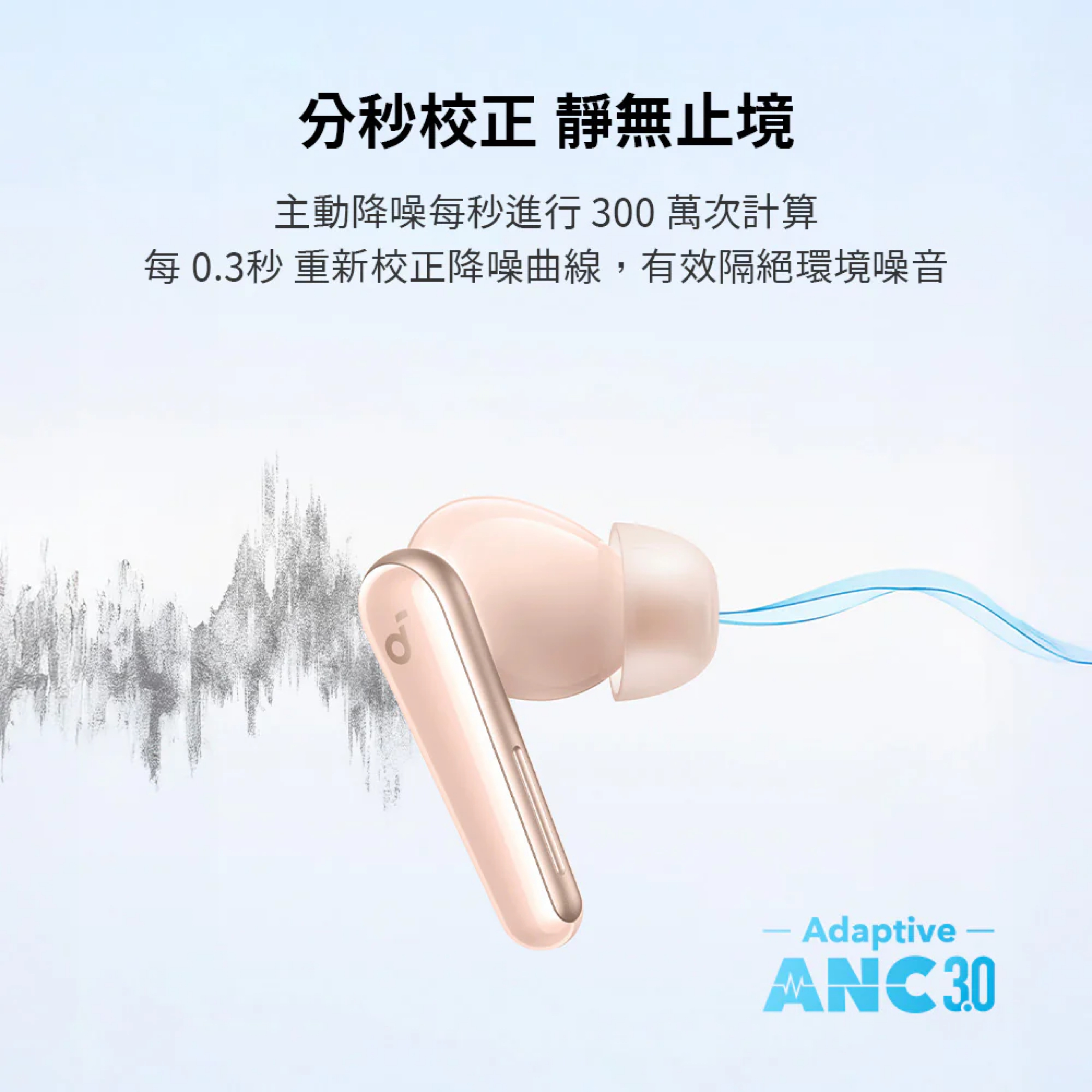 Adaptive ANC 3.0 演算法根據用戶的環境變化,每 0.3秒 調整降噪曲線,從而實現全天候更佳、無縫的降噪效果。