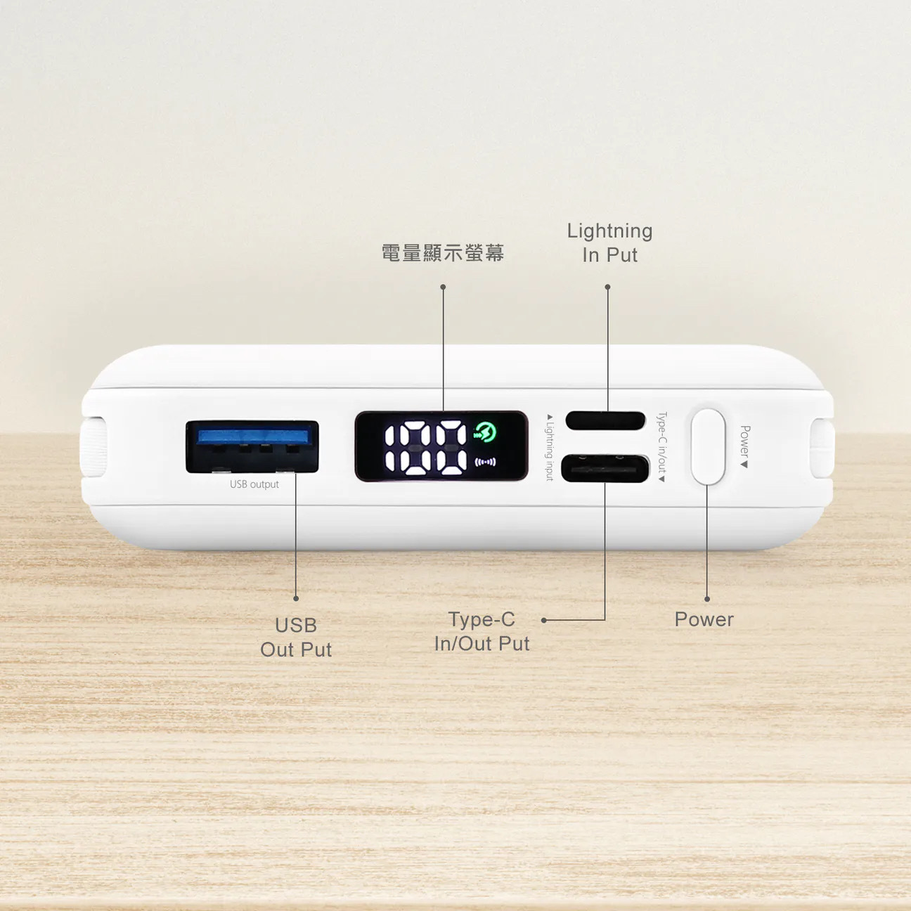 內容物 :  行動電源*1、說明書*1、充電線*1、收納袋*1