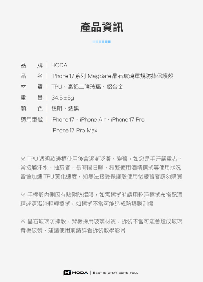 Hoda iPhone Air 晶石玻璃軍規防摔保護殼