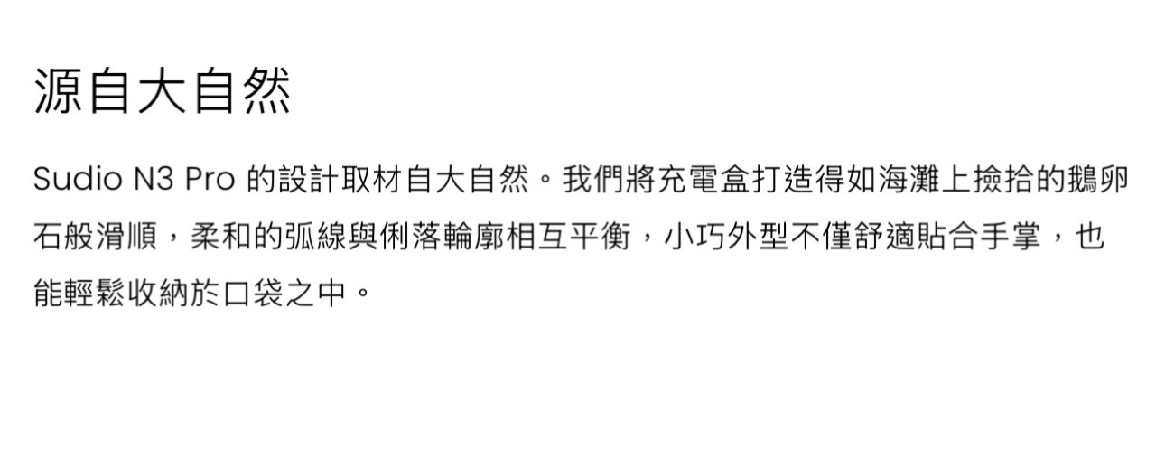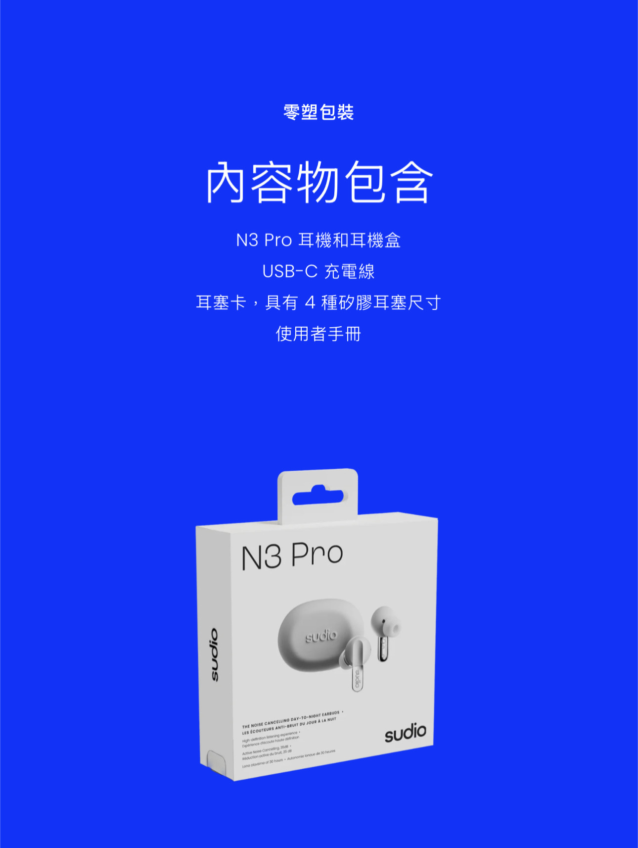 Sudio N3 Pro 將永恆的設計與日常功能融為一體。它採用低調的鵝卵石形錶殼,可提供 30 小時的高清音質和清晰的通話品質。防水等級為 IPX4,重量輕,由再生塑膠製成,旨在無縫融入您的日常生活。